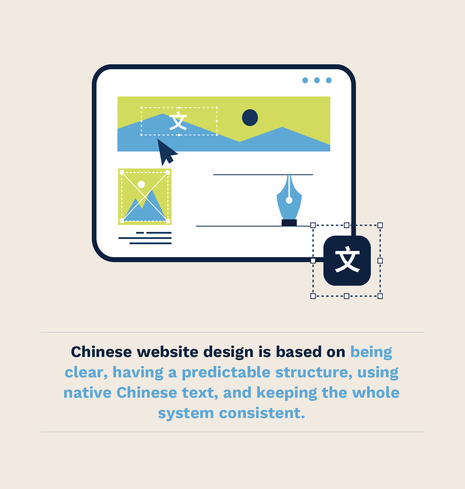 Most discovery and reading in China happens on mobile devices, and habits from the Mini Program world affect what people expect, even when they are on the open web. In Chinese website design, keep navigation simple, make buttons and links large enough to tap, and show clearly what happens when people tap, when a page loads, when a step succeeds, or when a mistake occurs. During China web design reviews, use the official checklists to spot risky layouts so you can fix them before launch. These tips will make the experience feel comfortable to Chinese consumers, even if you’re not making a Mini Program and it’s just a website.