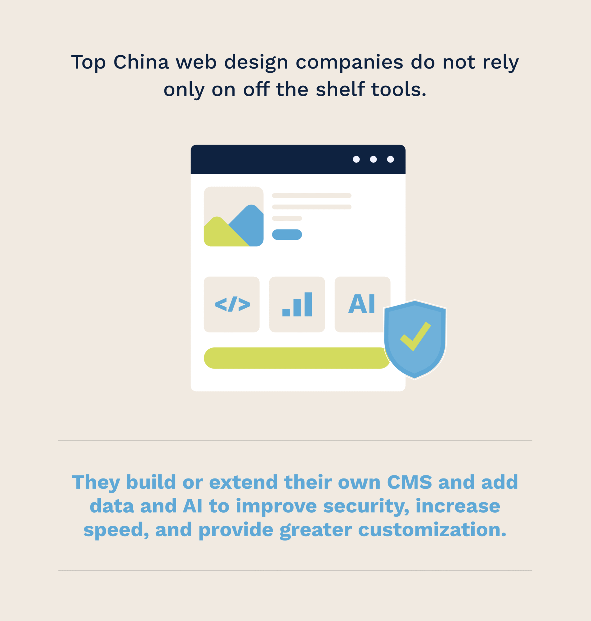 Top China web design companies do not rely only on off the shelf tools. They build or extend their own CMS and add data and AI to improve security, increase speed, and provide greater customization. As noted in the McKinsey Global Institute, 2024, proprietary digital capabilities and AI driven optimization are key differentiators among top performing Chinese tech firms. Data and AI support the work behind the scenes. Interfaces can adjust to context, tests can run automatically, and predictions can guide layout or content choices in real time.