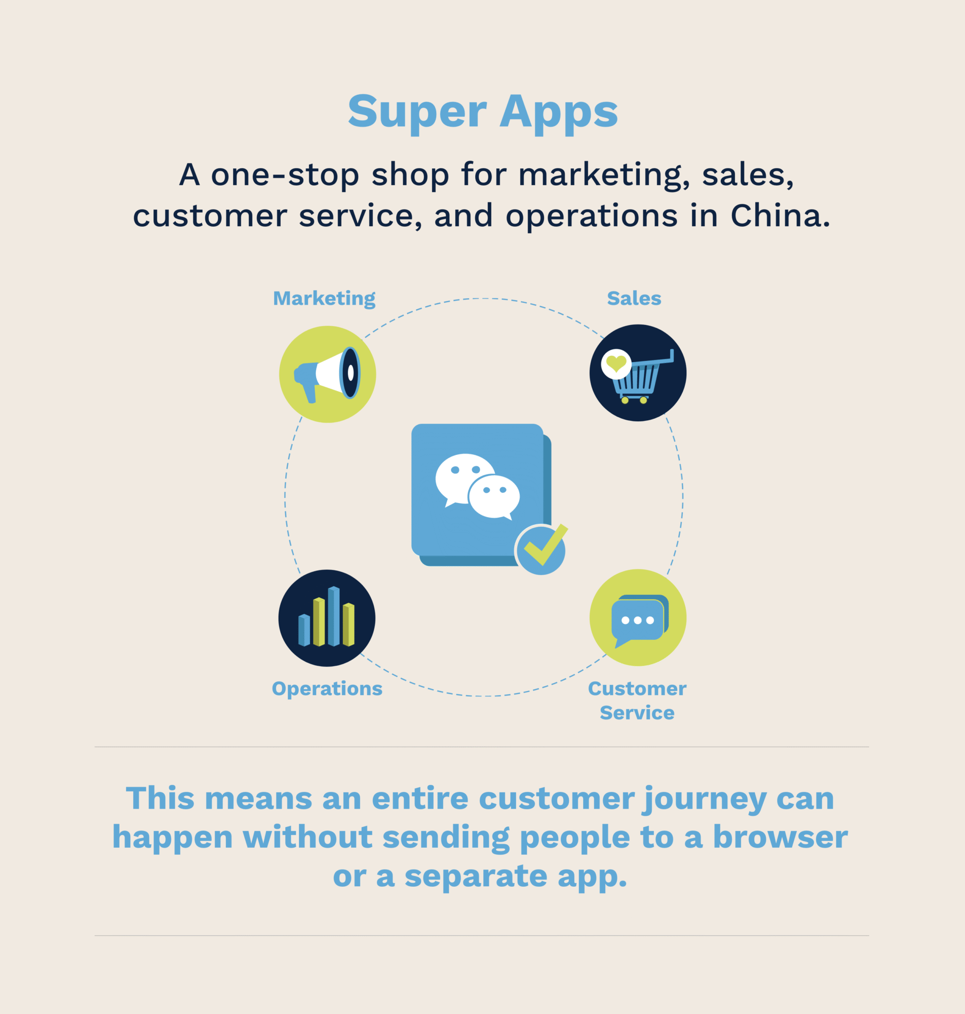 For a global audience, it’s essential to understand that WeChat is not just a messaging app like WhatsApp. It is a mobile operating system within an app. For businesses, it’s a one-stop shop for marketing, sales, customer service, and operations in China; this means an entire customer journey can happen without sending people to a browser or a separate app. That is why WeChat for Business has become a practical way to build reach, convert interest into sales, and keep relationships warm in China.